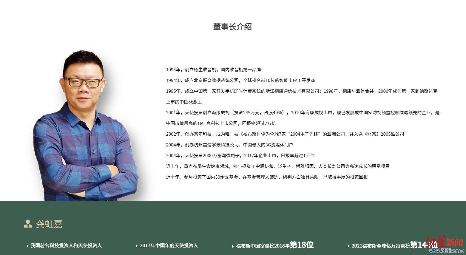 简历信息显示,龚虹嘉,1965年出生于湖北,1986年毕业于华中科技大学,其早年擅长写作,曾在高考时获得全省作文唯一满分的成绩。他先后创立和投资包括德生公司、海康威视(002415.SZ)、亚信德康、富年科技等数家企业。
